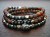 matte red tiger's eye buddha mala necklace or wrap bracelet, made from matte finish red tiger eye, grade A+ matte onyx, and gunmetal buddha head or choose a charm from left to right: